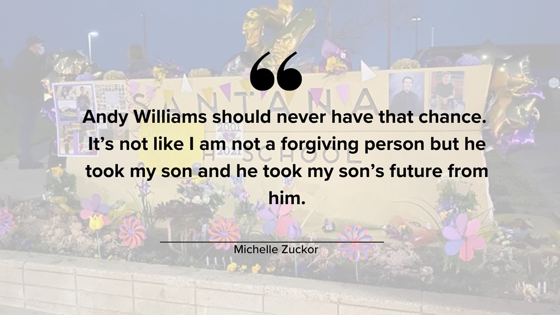 “It’s not fair because Bryan will never get that chance. I’m just so surprised,” Zuckor said before pausing, “Andy Williams should never have that chance. It’s not like I am not a forgiving person but he took my son and he took my son’s future from him.”